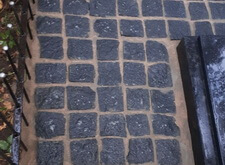 Наземное покрытие могилы гранитной брусчаткой,